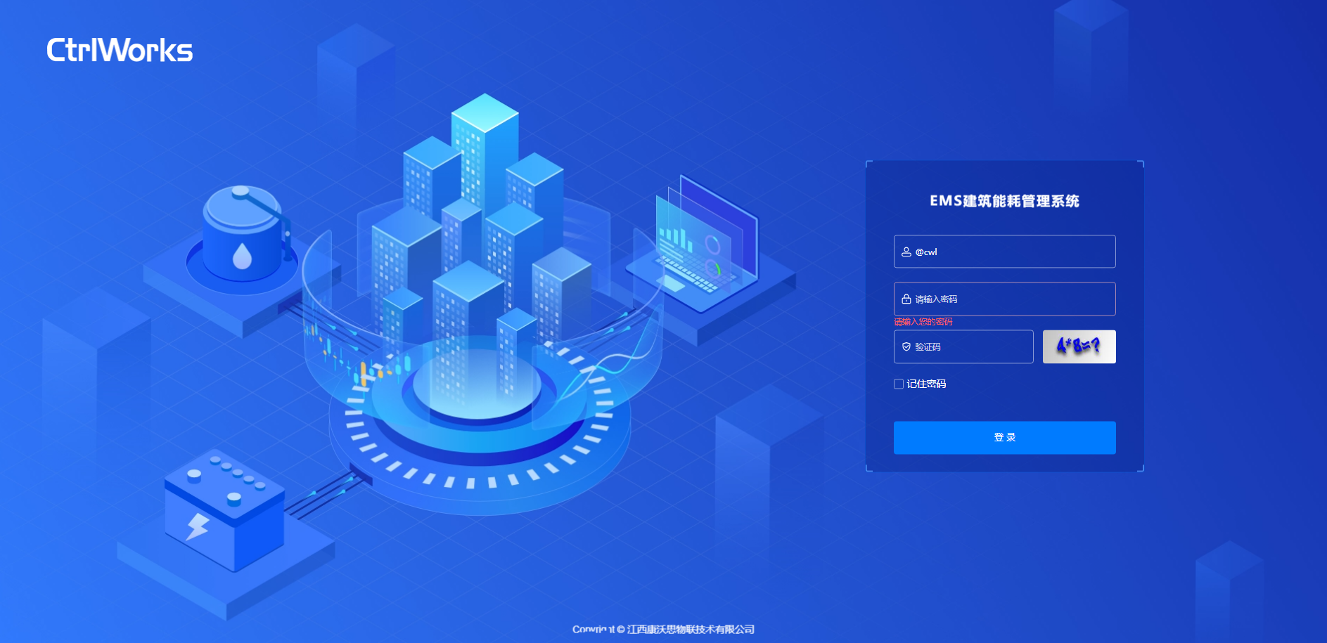 为了获得良好的使用体验,推荐使用最新的谷歌浏览器、360 浏览器等软件访问,启动浏览器访问“EMS建筑能耗管理系统”的ip地址,在窗口输入用户名、密码和验证码,点击登录进入平台。
